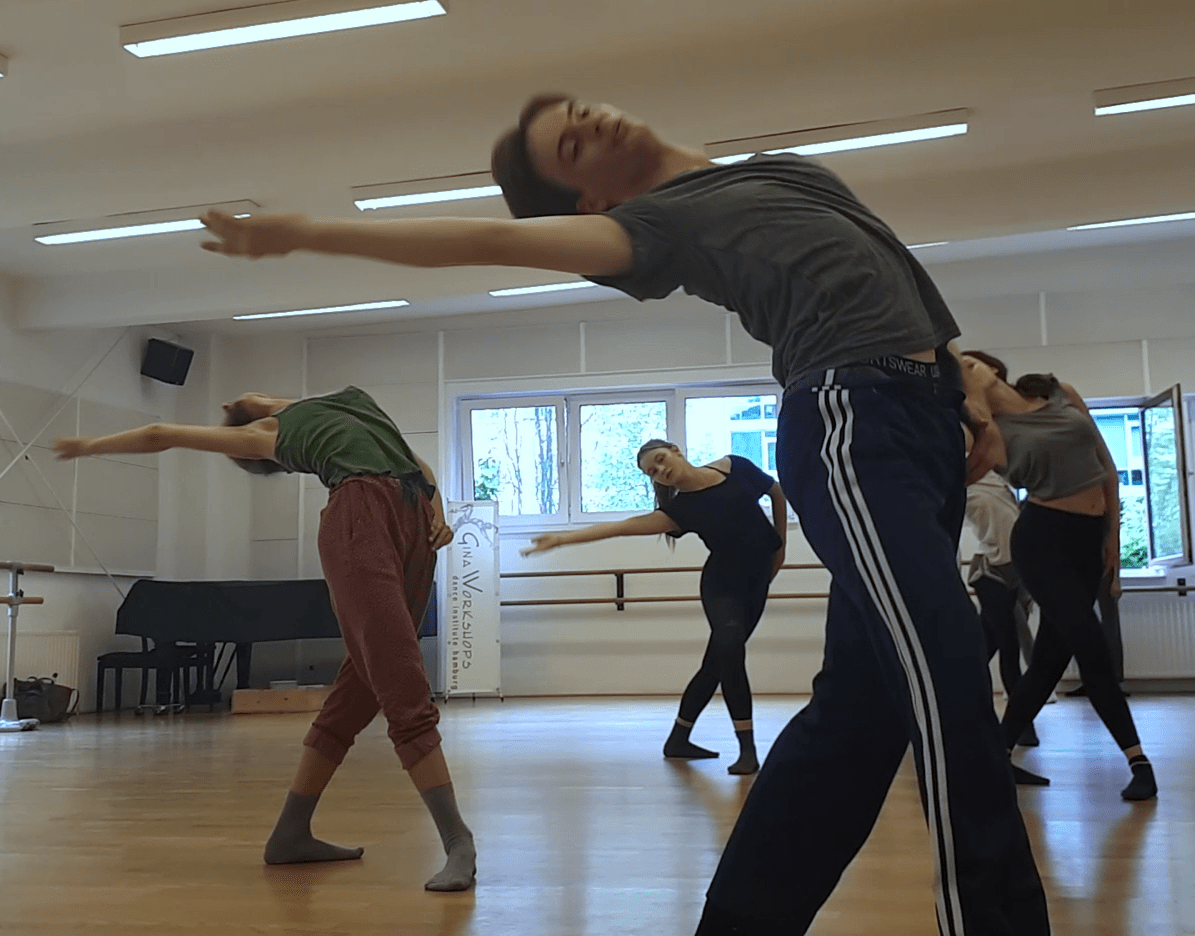 Eine harmonische und dynamisch bewegende Modern Dance Class, die auf dem Prinzip der Limon- und Release-Technik basiert und in verschiedene physische Extreme aufgeteilt ist: Fall und Erholung, Gewicht, Federung, Entspannung und Effizienz.